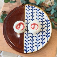 写真のように、やさしい色味のお皿とお守り陶器のセットは、特に人気の組み合わせ✨